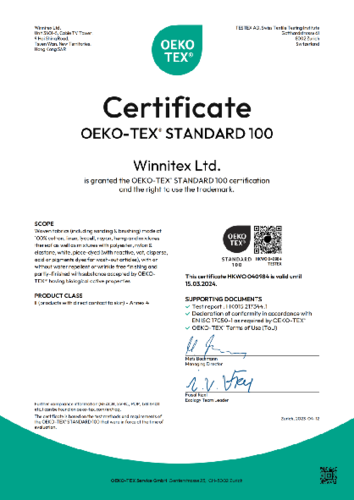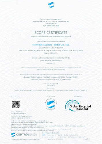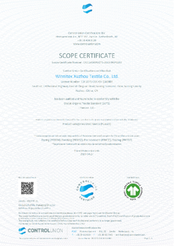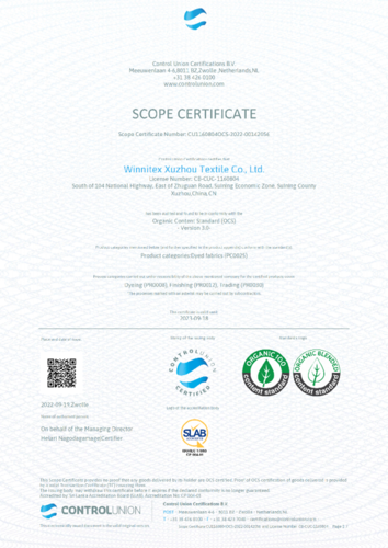 公司获得GOTS、RCS、OCS、OEKOTEX 100等认证。